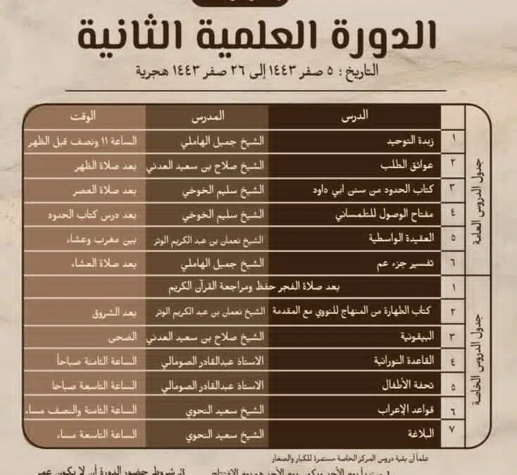 الدورة العلمية الثانية كتاب مفتاح الوصول إلى بناء الفروع على الاصول الأربعاء ۸ صفر ۱٤٤۳ هـ الموافق ۱۵ سبتمبر ۲۰۲۱ مـ | الدورات العلمية | شارك بتعليقك الدورة العلمية الثانية كتاب مفتاح الوصول إلى بناء الفروع على الاصول شرح الشيخ الفاضل سليم بن عبد الله الخوخي حفظه الله تعالى القيت في دار الحديث السلفية -في مدينة دار السلام العلمية- يختل -المخا حرسها الله بعد صلاة العصر PlayStopNext»«Prev HIDE PLAYLIST نافذة X مرتبط الدورة العلمية الثانية كتاب عوائق الطلب الدورة العلمية الثانية كتاب الحدود من سنن ابي داود